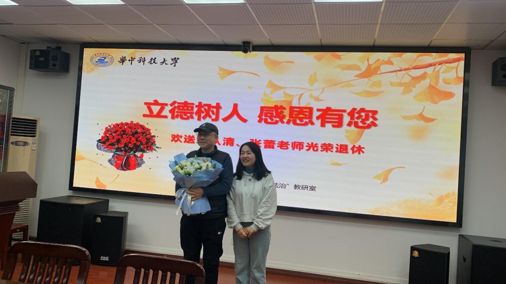 接著,教研室為鄒從清、張蕾兩位退休老師舉行了歡送儀式。鄒老師回顧了從教30多年的歷程,年輕的郭玉杰老師代表教研室為退休老師獻(xiàn)花。