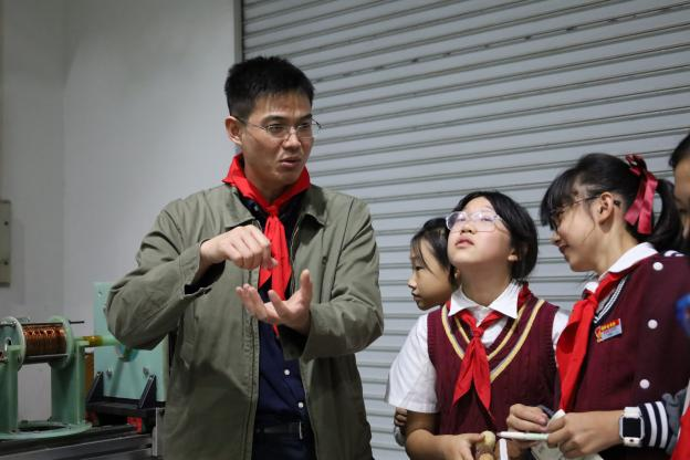 在課程的第三部分,呂以亮老師帶領(lǐng)同學(xué)們參觀國(guó)家脈沖強(qiáng)磁場(chǎng)實(shí)驗(yàn)室,沉浸式體悟當(dāng)代青年對(duì)愛(ài)國(guó)精神的傳承,并開(kāi)啟了“強(qiáng)國(guó)有我:新時(shí)代青年學(xué)子如何實(shí)現(xiàn)科技報(bào)國(guó)”的課程講解。參觀過(guò)程中,呂老師詳細(xì)介紹了實(shí)驗(yàn)室的研究方向、主要設(shè)備和最新研究成果。他特別強(qiáng)調(diào)了新一代青年們?cè)趯?shí)驗(yàn)室中所表現(xiàn)出的嚴(yán)謹(jǐn)、求實(shí)和創(chuàng)新精神,以及這些精神特質(zhì)對(duì)于國(guó)家科技發(fā)展的重要意義。同時(shí),呂老師鼓勵(lì)同學(xué)們勇于探索未知領(lǐng)域,積極投身科學(xué)研究,將學(xué)到的知識(shí)和理念轉(zhuǎn)化為實(shí)際行動(dòng),為實(shí)現(xiàn)科技報(bào)國(guó)貢獻(xiàn)自己的力量。在呂老師的引導(dǎo)下,同學(xué)們深刻感受到科學(xué)研究的魅力,深入了解了科學(xué)家精神的豐富內(nèi)涵。