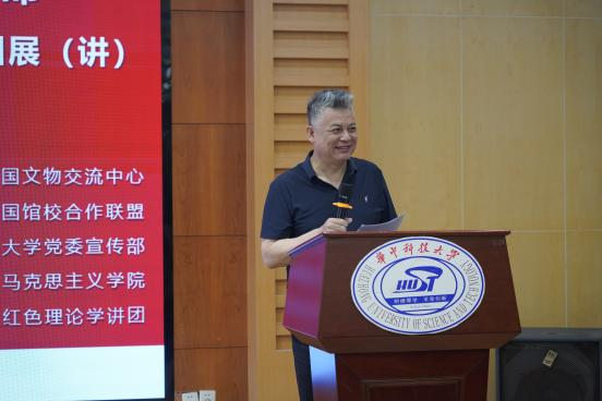 (通訊員:陳燁)為進(jìn)一步推進(jìn)我校“大思政課”建設(shè)工作走深走實(shí),6月1日下午,由中國(guó)文物交流中心、全國(guó)館校合作聯(lián)盟主辦,校黨委宣傳部、校研究生紅色理論學(xué)講團(tuán)和馬院共同承辦“行走的思政課”系列:“聽藏品故事 悟初心使命”—革命文物里的“思政課”在大學(xué)生活動(dòng)中心B座513會(huì)場(chǎng)舉行。全國(guó)館校合作聯(lián)盟秘書長(zhǎng)朱成山,校黨委宣傳部副部長(zhǎng)騰燈光、李翔,我院院長(zhǎng)岳奎出席本次活動(dòng)。活動(dòng)由湖北省朗誦藝術(shù)家協(xié)會(huì)會(huì)長(zhǎng)、湖北廣播電視臺(tái)播音指導(dǎo)、華中科技大學(xué)新聞學(xué)院客座教授謝東升主持。