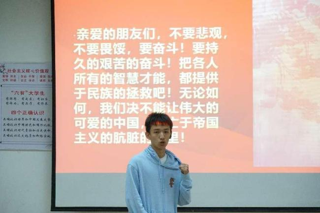 課堂最后,彭鶴翔老師作總結。他表示,一個民族如何解釋自己的過去,就是在如何對待自己的未來,學習歷史,是一種紀念,更是一種激勵。他勉勵同學們通過此次翻轉課堂深刻領會英雄人物堅定的理想信念和崇高的人生境界,從中汲取智慧力量,以自強不息的精神、朝氣蓬勃的姿態(tài),立志奮勇爭先,奮力譜寫中華民族偉大復興進程中激昂的青春樂章。