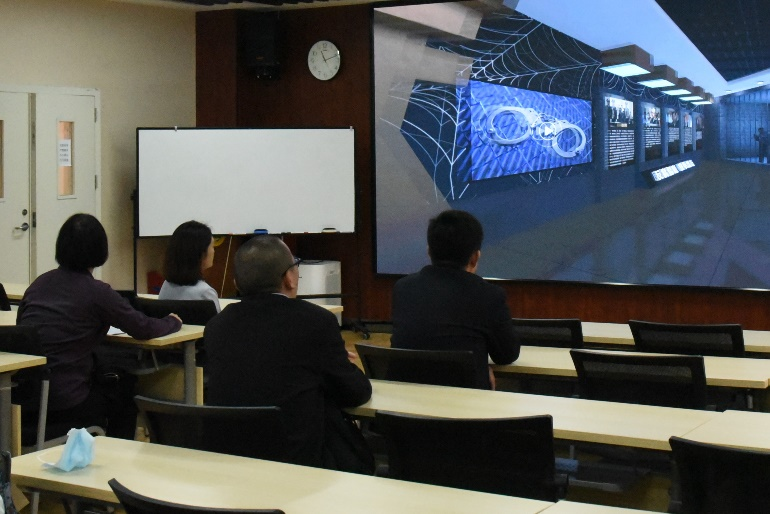 座談會結(jié)束后,“德法”教研室一行在政治理論系負(fù)責(zé)人的帶領(lǐng)下走訪參觀海工大政治能力訓(xùn)練中心,對其特色功能和訓(xùn)練系統(tǒng)進(jìn)行了解,并對中心的VR全景設(shè)備進(jìn)行體驗。
