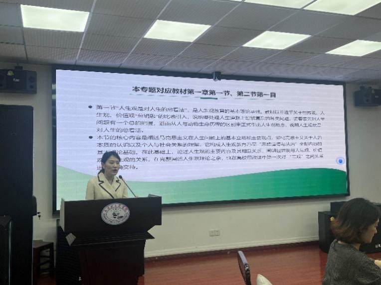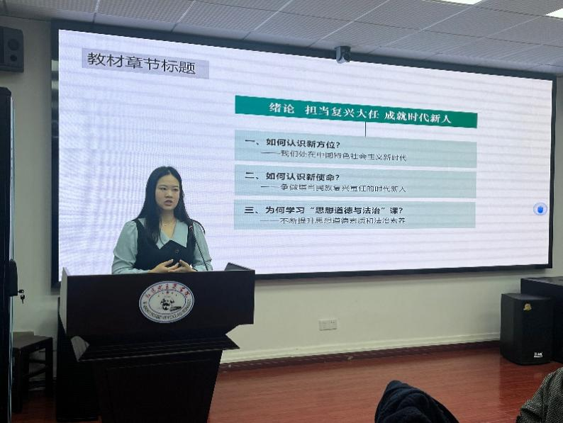 熊雅妮圍繞《德法》教材緒論內(nèi)容,從緒論重要性、新教材修訂細(xì)節(jié)、課程教學(xué)方法、教學(xué)內(nèi)容設(shè)計(jì)四個(gè)方面展開講解,并對(duì)緒論第一部分第二講內(nèi)容進(jìn)行了說課示范。