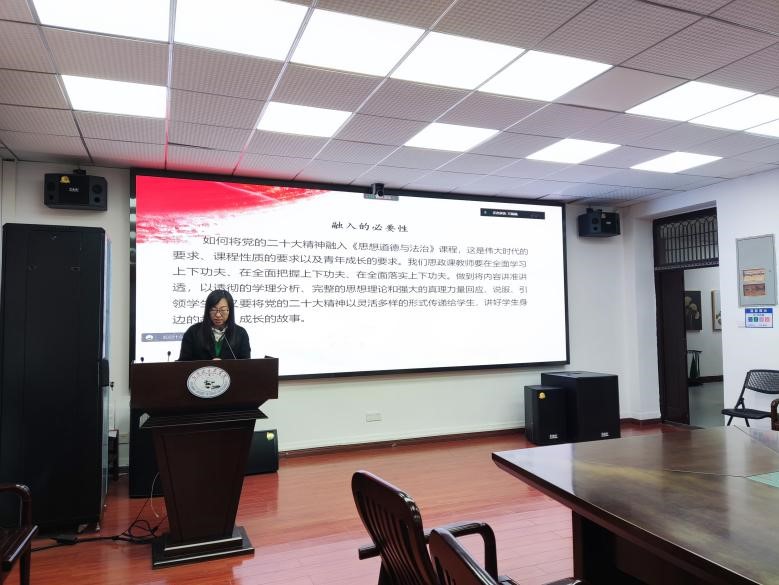 課程組集中研討了如何將黨的二十大精神融入“德法”課程的教學(xué)工作,梁紅、萬晶晶、楊昌華、白萍、王卉、張冬靜、趙志堅(jiān)、張蕾及阮麗萍等老師從各章節(jié)的教學(xué)內(nèi)容切入,深入分析了黨的二十大報(bào)告對于課程內(nèi)容的可運(yùn)用之處,結(jié)合學(xué)術(shù)邏輯和實(shí)踐邏輯,根據(jù)學(xué)生的學(xué)情特點(diǎn)進(jìn)行教學(xué)設(shè)計(jì),分享“融入”經(jīng)驗(yàn),努力實(shí)現(xiàn)將黨的二十大精神的哲理講深、講透、講活。