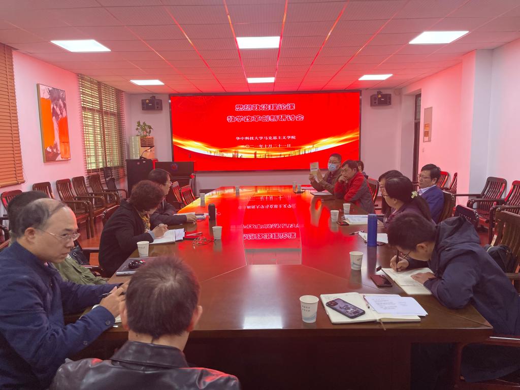 會議伊始,沈昊駒老師梳理并總結(jié)了馬克思主義學(xué)院自2007年建院以來,在課程建設(shè)與改革創(chuàng)新中的努力與成果。對學(xué)院完善的必修課體系與不斷建設(shè)中的選修課體系給予充分肯定,強調(diào)我院不僅是湖北省《習(xí)近平新時代中國特色社會主義思想》課程的首開學(xué)院,還擁有《深度中國》、《思想道德與法治》等國家級、省級一流課程。