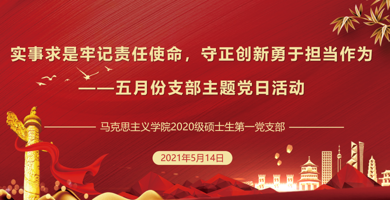5月14日中午,我院2020級碩士研究生第一黨支部開展題為“實事求是牢記責(zé)任使命,守正創(chuàng)新勇于擔(dān)當(dāng)作為”的主題黨日活動,本次主題黨日活動以“精神學(xué)習(xí)”和“黨史學(xué)習(xí)”為主線,涵蓋了微黨課宣講、黨史學(xué)習(xí)、精神研討、理論測試等內(nèi)容,支部18位黨員,8位積極分子參與此次活動。