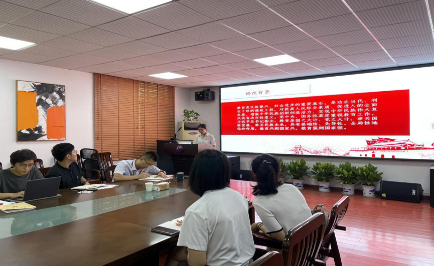 教育是民族振興和社會進(jìn)步的基石,是功在當(dāng)代、利在千秋的德政工程。接著,黃秋月同志從“修改背景、修改內(nèi)容和修改意義”三個(gè)方面帶領(lǐng)大家一起學(xué)習(xí)《中華人民共和國教育法》,重點(diǎn)講述教育法中的指導(dǎo)思想、教育地位、教育任務(wù)和刑事責(zé)任,并一一梳理了變化前和變化后的內(nèi)容,讓同學(xué)們在清晰的對比中學(xué)習(xí)教育法的相關(guān)內(nèi)容。明確了黨的教育方針,強(qiáng)調(diào)了當(dāng)今的學(xué)校教育要努力培養(yǎng)德智體美勞全面發(fā)展的社會主義建設(shè)者和接班人。