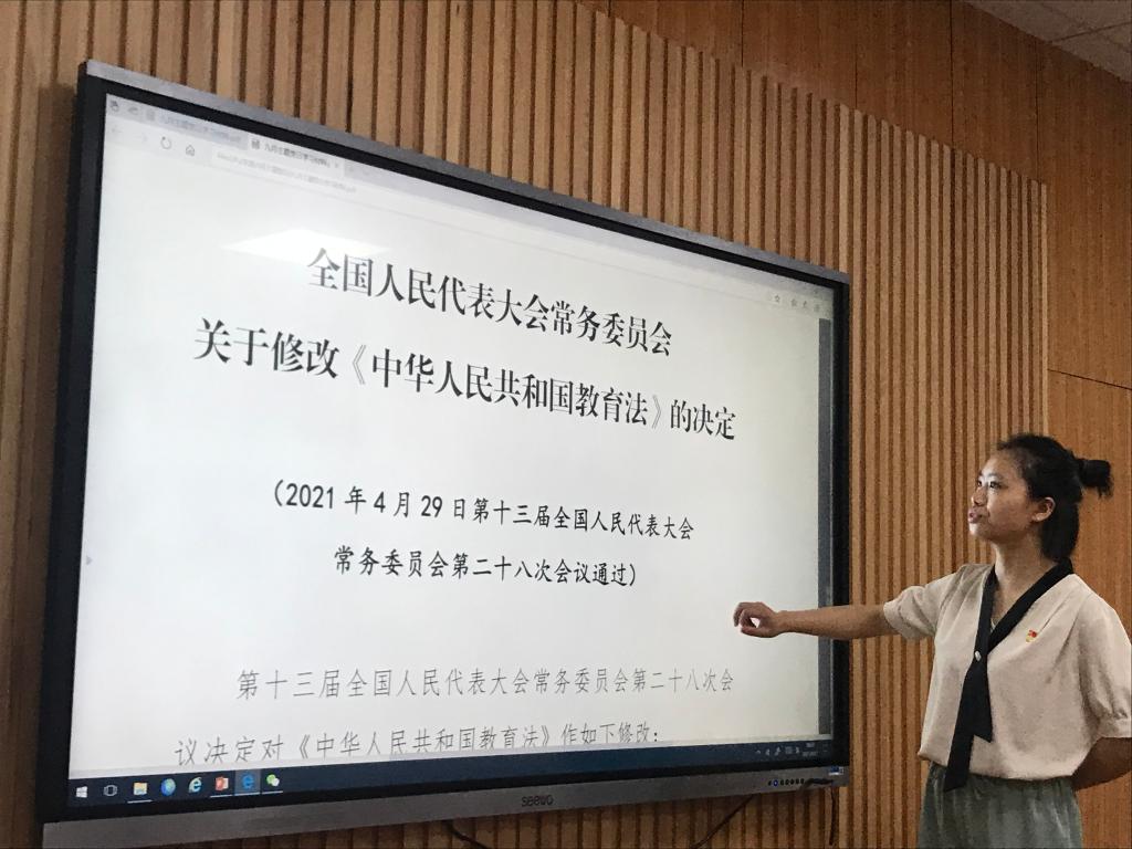隨后,支部成員根據(jù)《中華人民共和國(guó)教育法》認(rèn)真學(xué)習(xí)了黨的教育方針,了解了“培養(yǎng)什么人、怎樣培養(yǎng)人、為誰培養(yǎng)人”的法律規(guī)范和制度要求,對(duì)教育的重要地位和內(nèi)容有了更深刻的認(rèn)知,也增強(qiáng)了“爭(zhēng)做德智體美勞全面發(fā)展的社會(huì)主義建設(shè)者和接班人”的自我驅(qū)動(dòng)力,以實(shí)際行動(dòng)為全面建設(shè)社會(huì)主義現(xiàn)代化國(guó)家不斷作出新貢獻(xiàn)。