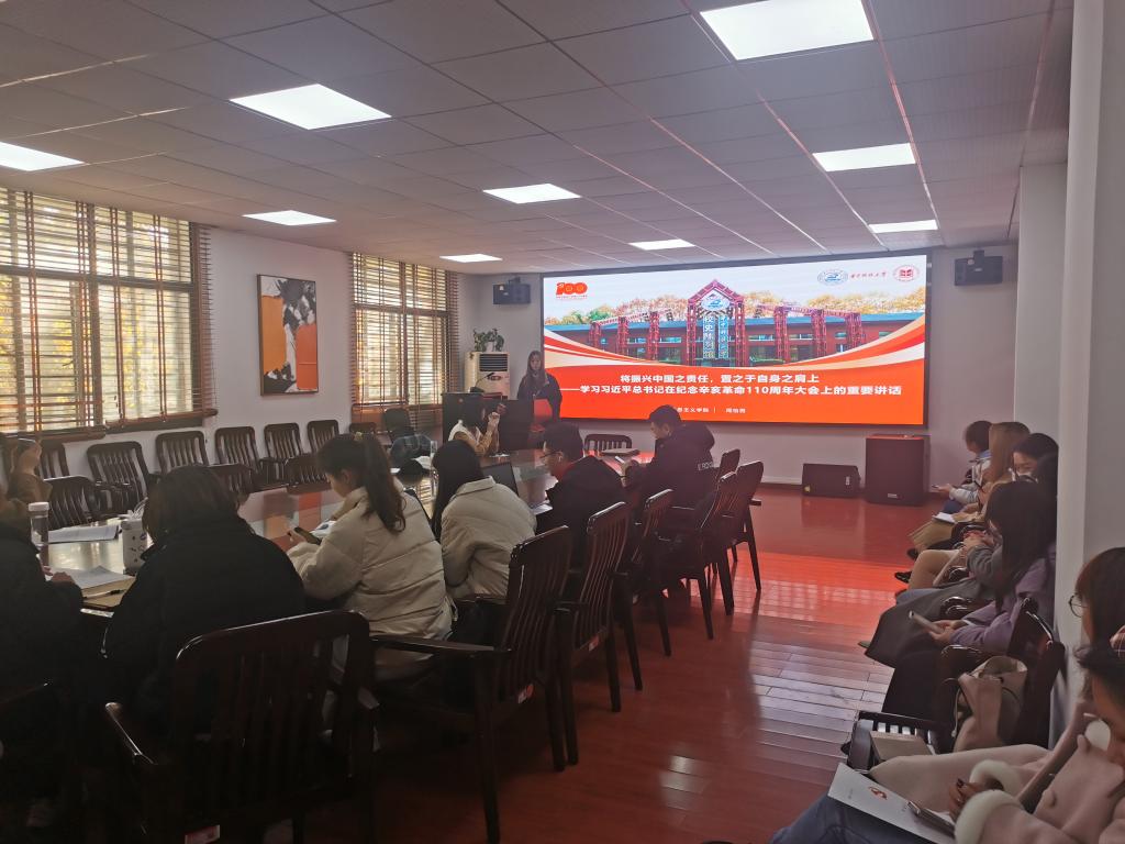 此次黨組織生活會邀請了校研究生紅色理論學(xué)講團的周怡男同學(xué)以“振興中國之責(zé)任,置于自身之肩上”為主題為支部成員們分享了“習(xí)近平總書記在紀(jì)念辛亥革命110周年大會上的講話”內(nèi)容。她介紹了辛亥革命的發(fā)生過程及其在中國近代史上的里程碑地位,并指出中國共產(chǎn)黨是孫中山先生革命事業(yè)最堅定的擁護者,黨的歷史使命是為中國人民謀幸福,為中華民族謀復(fù)興。隨后,周怡男同學(xué)總結(jié)了辛亥革命的歷史啟示,如堅持中國共產(chǎn)黨的領(lǐng)導(dǎo)、堅持中國特色社會主義道路是中華民族偉大復(fù)興的唯一正確道路,堅持人民的英勇奮斗,堅持中國人民和中華民族的同舟共濟,兼顧國際國內(nèi)兩個大局等,并強調(diào)祖國完全統(tǒng)一的歷史任務(wù)一定能實現(xiàn)。