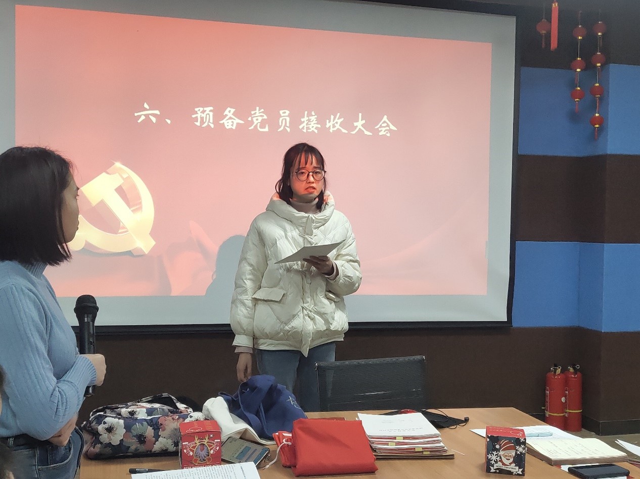在預(yù)備黨員接收環(huán)節(jié),劉貝、吳子晗、任艷敏、郭玲麗、常慧五位同學(xué)就近一年來的學(xué)習(xí)、工作和生活上的情況向大家進(jìn)行了介紹,并表示今后將繼續(xù)以一名優(yōu)秀黨員的標(biāo)準(zhǔn)嚴(yán)格要求自己,保持堅定的政治立場和使命擔(dān)當(dāng)。隨后,經(jīng)支部黨員充分討論,在場的正式黨員采取了無記名投票的方式進(jìn)行表決,并最終一致同意接收該5名同志為中共預(yù)備黨員。