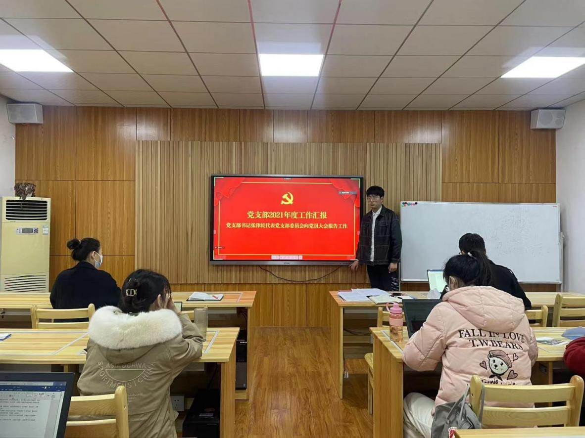 支部書記張澤民代表黨支部委員會(huì)從黨支部建設(shè)、支部活動(dòng)的概覽、支部存在的問題和未來發(fā)展規(guī)劃四個(gè)方面向黨員大會(huì)作2021年度工作匯報(bào)。在支部建設(shè)上,從黨員發(fā)展與組織架構(gòu)兩方面入手總結(jié)了支部組織建設(shè)情況。接著,從10名同志入黨、6次主題黨日、4次特色活動(dòng)、2次實(shí)踐走訪、1項(xiàng)集體榮譽(yù)這五個(gè)方面對(duì)支部半年來的實(shí)踐活動(dòng)、理論學(xué)習(xí)等方面進(jìn)行一一匯報(bào);也通過黨小組交流談心、深入調(diào)查的方式搜集整理支部黨員對(duì)支部存在的問題及發(fā)展建議,為未來黨支部的發(fā)展規(guī)劃指明方向和貢獻(xiàn)集體智慧。他就支部未來發(fā)展工作對(duì)全體黨員提出了希望,要進(jìn)一步加強(qiáng)支部建設(shè),結(jié)合實(shí)際制定支部學(xué)習(xí)活動(dòng)計(jì)劃,做到有章可循;支部活動(dòng)要結(jié)合學(xué)生需求實(shí)際彰顯實(shí)效;緊跟時(shí)代形勢(shì),加強(qiáng)政治理論和業(yè)務(wù)知識(shí)學(xué)習(xí),相互交流,共同提升,充分發(fā)揮每一位黨員和積極分子的潛力,力爭(zhēng)打造更有戰(zhàn)斗力的基層黨支部。