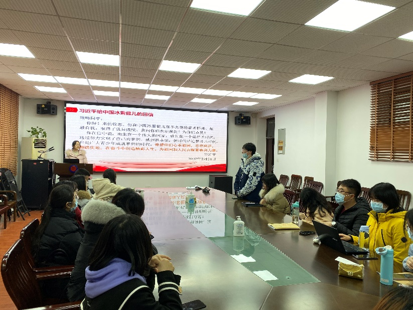 首先由團支部支委彭俊杰同志領(lǐng)學習近平總書記給中國冰雪健兒重要回信精神。彭俊杰同志強調(diào)了要深刻領(lǐng)會習近平總書記回信的豐富內(nèi)涵,其中重點要把握好以下四點。一是從總書記回信中體會冬奧會成功舉辦的中國成就,北京冬奧會的“無與倫比”讓世界更深入了解中國發(fā)展的歷史性成就。二是從總書記回信中品讀拼搏奮進的“中國精神”。三是從總書記回信中體悟領(lǐng)袖的囑托和期待。四是從總書記回信中汲取干事創(chuàng)業(yè)的力量。支部同學集體觀看了記錄谷愛凌成長路徑的紀錄片《谷愛凌:我,18》,感受天才美少女背后的努力。學習冬奧精神后,柯孜璇和曹粵茗同學感悟到:作為當代青年,應(yīng)堅持學習冬奧健兒身上的奧運精神——不懼挑戰(zhàn)、頑強拼搏,并付諸實踐去面對生活和學習上的困難挑戰(zhàn)。