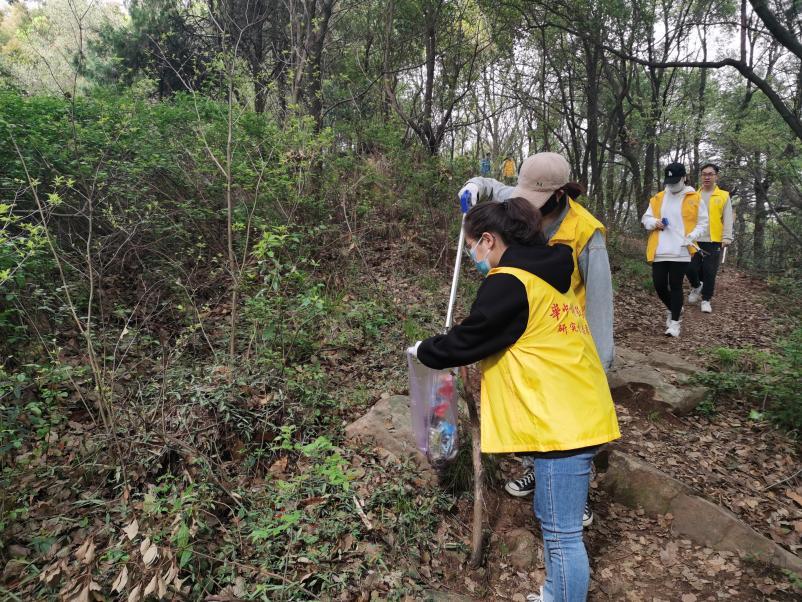 在行進(jìn)途中,志愿者們還遇見了眾多周末攀登喻家山的學(xué)生與老師們,在與其交流中向大家傳播環(huán)保理念,宣傳志愿服務(wù)精神,得到了老師同學(xué)的一致好評。