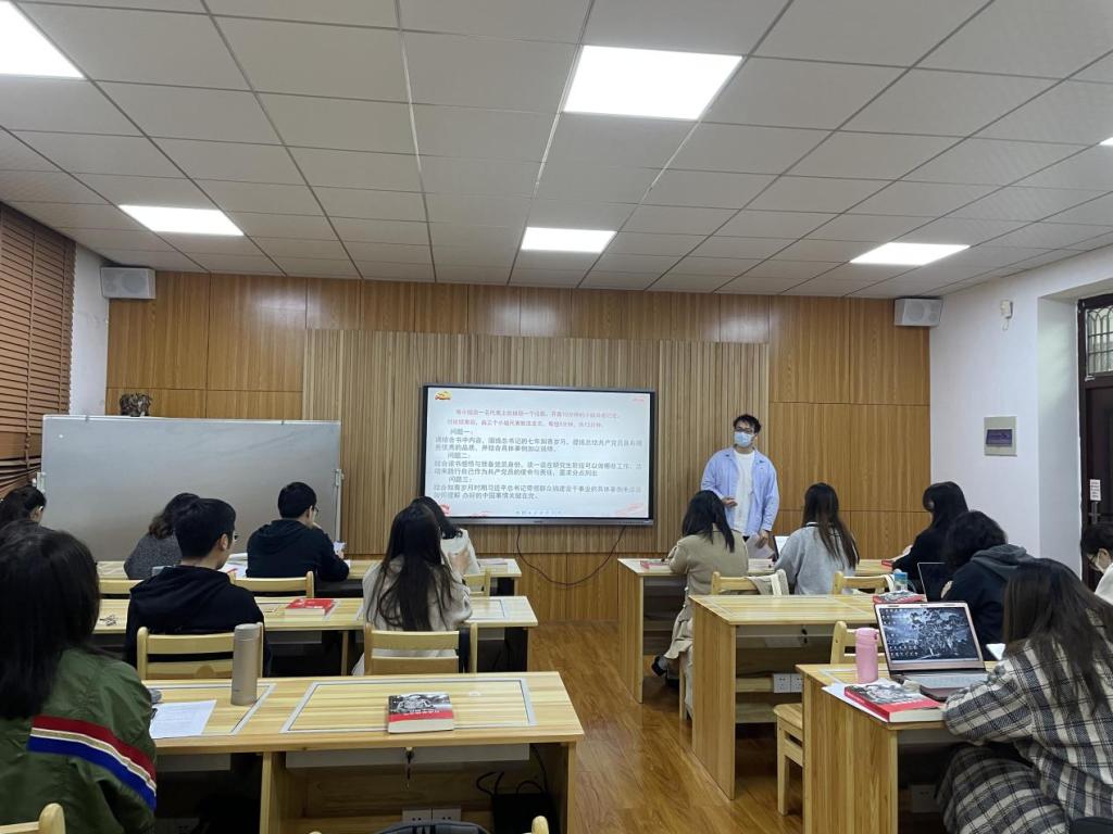 接著,2020級第一黨支部代表劉濤同志從內(nèi)容細(xì)節(jié)、黨性修養(yǎng)、感想感悟三個方面談了對“各界說”內(nèi)容的感悟,呼吁黨員們要堅持以人民為中心,時刻心系百姓;要永葆肯吃苦,不怕吃苦的奮斗精神,作為生活在新時代的青年一代,沒有任何理由怨天尤人,必須像青年習(xí)近平那樣,敢于吃苦、樂于吃苦、善于吃苦、不忘吃苦,在奮斗中創(chuàng)造屬于自己的無悔青春;要篤實好學(xué),養(yǎng)成愛讀書、善讀書的生活方式,作為馬理論專業(yè)的研究生,我們要養(yǎng)成讀經(jīng)典的好習(xí)慣,打磨、用好自己的“武器”。