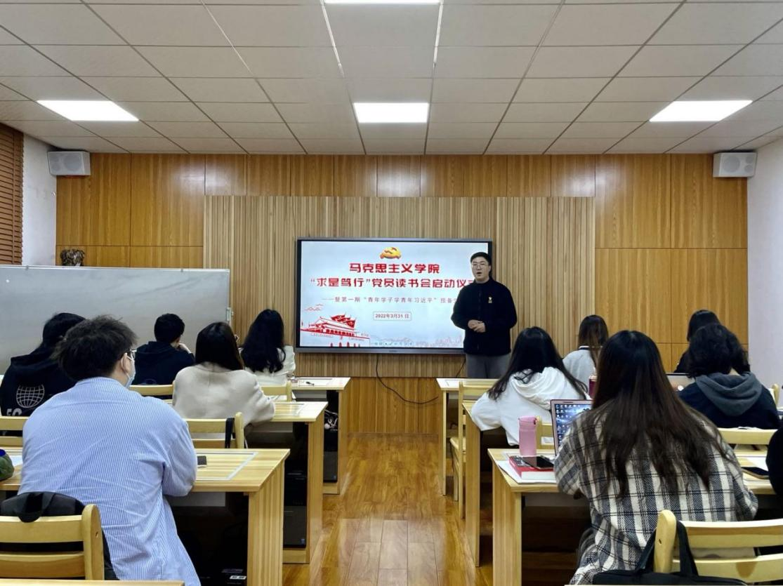 經(jīng)過近3個月的思考與閱讀,2022年3月31日晚,三個支部在學(xué)院205聯(lián)合舉辦了“求是篤行”黨員讀書會——暨第一期“青年學(xué)子學(xué)青年習(xí)近平”預(yù)備黨員讀書會,學(xué)院黨委副書記王明飛老師、各支部支書和預(yù)備黨員共同參加此次讀書會,支部同志們在會上交流收獲,分享感悟,以進一步深化對書籍的理解和黨性的認(rèn)識。本次會議由2021級碩士生第一黨支部書記楊可心主持。