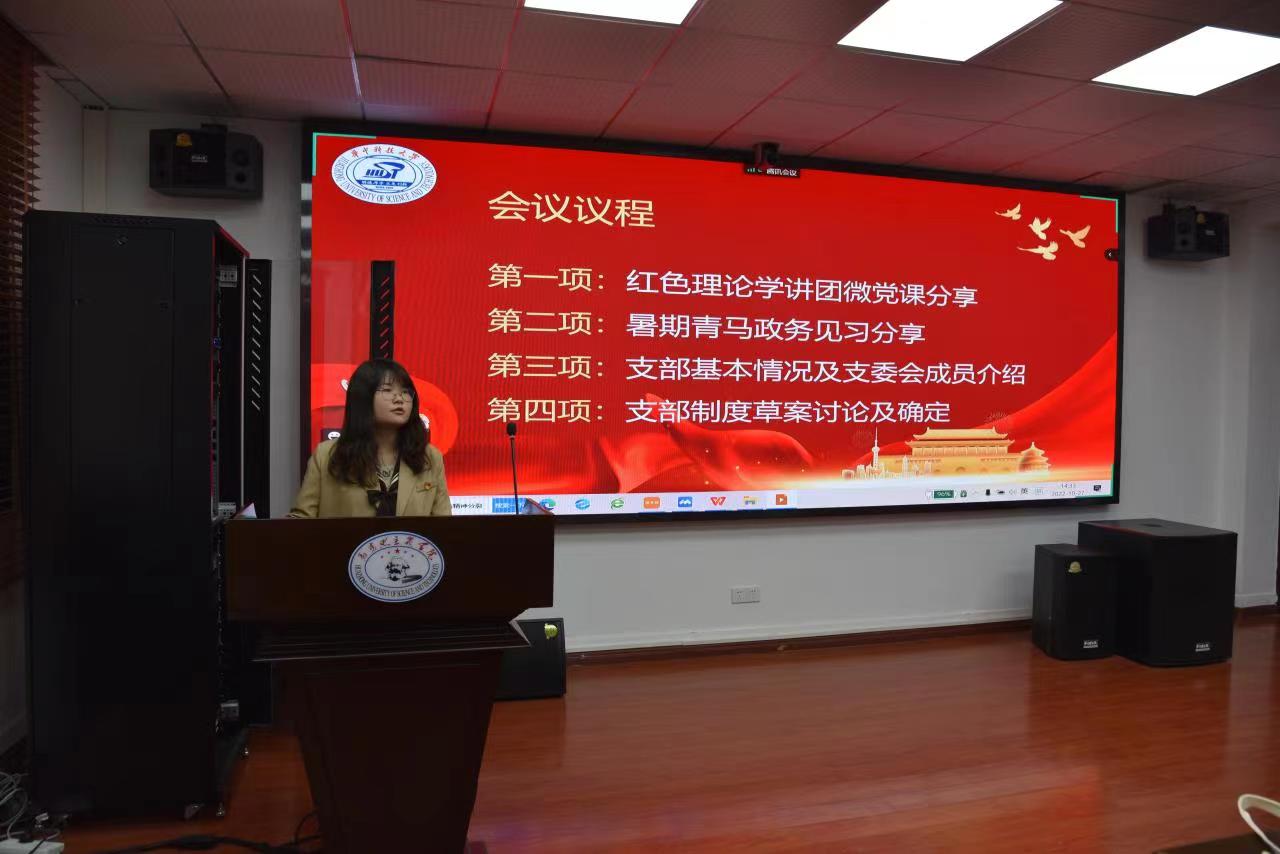 隨后,黨支部成員張會(huì)杰同志聯(lián)合思政專業(yè)孫昕月同志、馬原專業(yè)余鵬濤同志為大家分享暑期青馬政務(wù)見習(xí)的心得感受。他們以“青馬學(xué)校百人政務(wù)見習(xí)團(tuán)——與英雄城市一起向未來(lái)”為主題,從政務(wù)見習(xí)、理論學(xué)習(xí)、調(diào)研實(shí)踐和志愿服務(wù)四個(gè)部分展示和介紹了他們?cè)谏鐣?huì)課堂中“受教育、長(zhǎng)才干、作貢獻(xiàn)”的過程。張會(huì)杰同志表示自己在暑期青馬政務(wù)見習(xí)中真正體會(huì)到了“實(shí)干出真知”的道理,只有將理論與實(shí)踐相結(jié)合,在奉獻(xiàn)自我中提升自我,才能更好地貢獻(xiàn)青春力量,展現(xiàn)青馬風(fēng)采;只有不斷增強(qiáng)政治意識(shí),錘煉工作本領(lǐng),才能在實(shí)干中淬煉意志、磨煉品格,彰顯青馬精神。