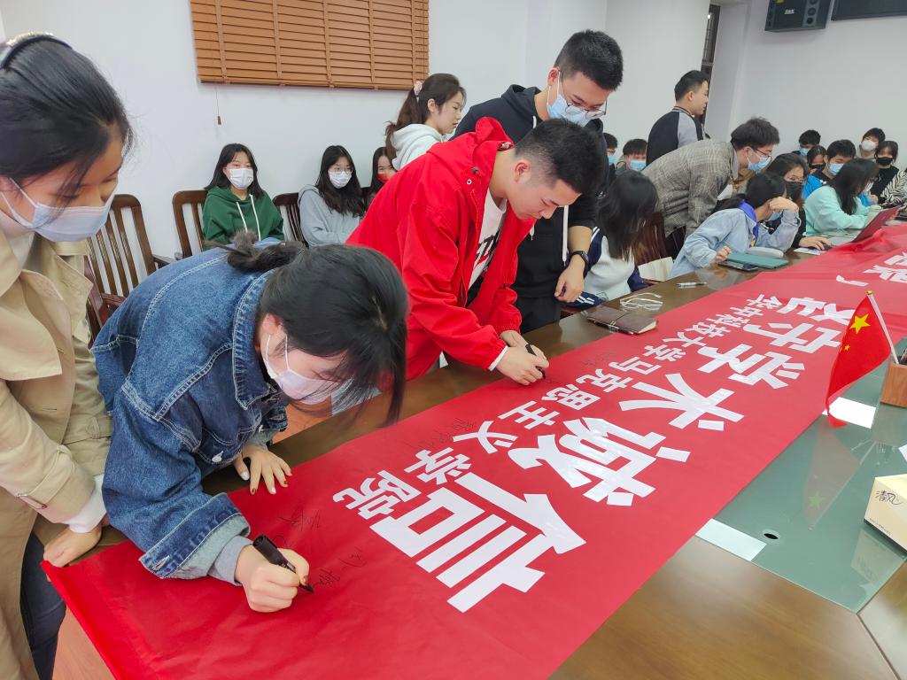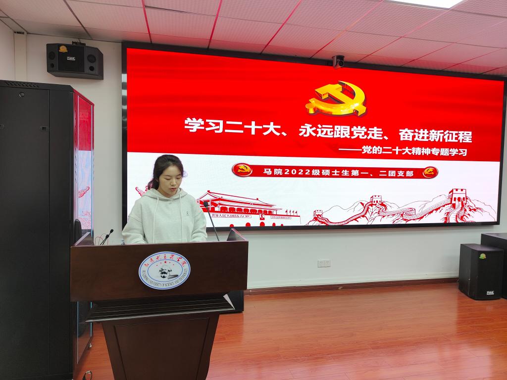 中國共產(chǎn)黨第二十次全國代表大會于2022年10月22日在背景閉幕,為深入學(xué)習(xí)宣傳貫徹黨的二十大精神,2022級碩士生第一、二團(tuán)支部于10月30日聯(lián)合開展黨的二十大精神專題學(xué)習(xí)主題團(tuán)日活動。本次活動由2022級碩士生第二團(tuán)支部書記邱卓婭主持,全體2022級碩士生團(tuán)員參加了此次活動。