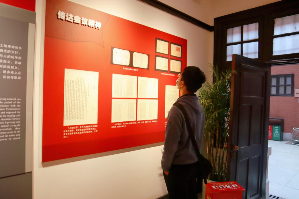八七會(huì)議會(huì)址紀(jì)念館是武漢市精神文明建設(shè)的重要窗口,也是思想教育的重要陣地。這里曾是武裝烽火燃起的圣地,也是中國命運(yùn)轉(zhuǎn)折的地方。步入展廳,“偉大的歷史轉(zhuǎn)折”五個(gè)大字映入眼簾,似無聲地訴說著這段崢嶸歲月,令大家心生肅穆。展廳內(nèi)分為“風(fēng)云突變”、“力挽狂瀾”、“星火燎原”三個(gè)部分,黨員同志們緩步前行,凝望著八七會(huì)議記錄及其決議案、會(huì)議代表瞿秋白等人用過的物品、李維漢的親筆信函等,仿佛 “觸摸”到了中國共產(chǎn)黨不懼艱辛、力挽狂瀾、挽救中國革命于危難之中的歷史。每走到一個(gè)展廳,大家都會(huì)駐足沉思,交流感想體會(huì),為八七會(huì)議的激蕩風(fēng)云而深深動(dòng)容。