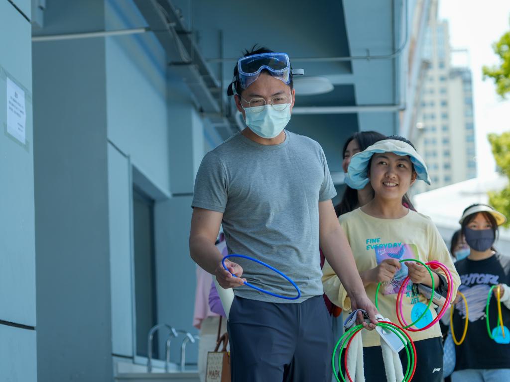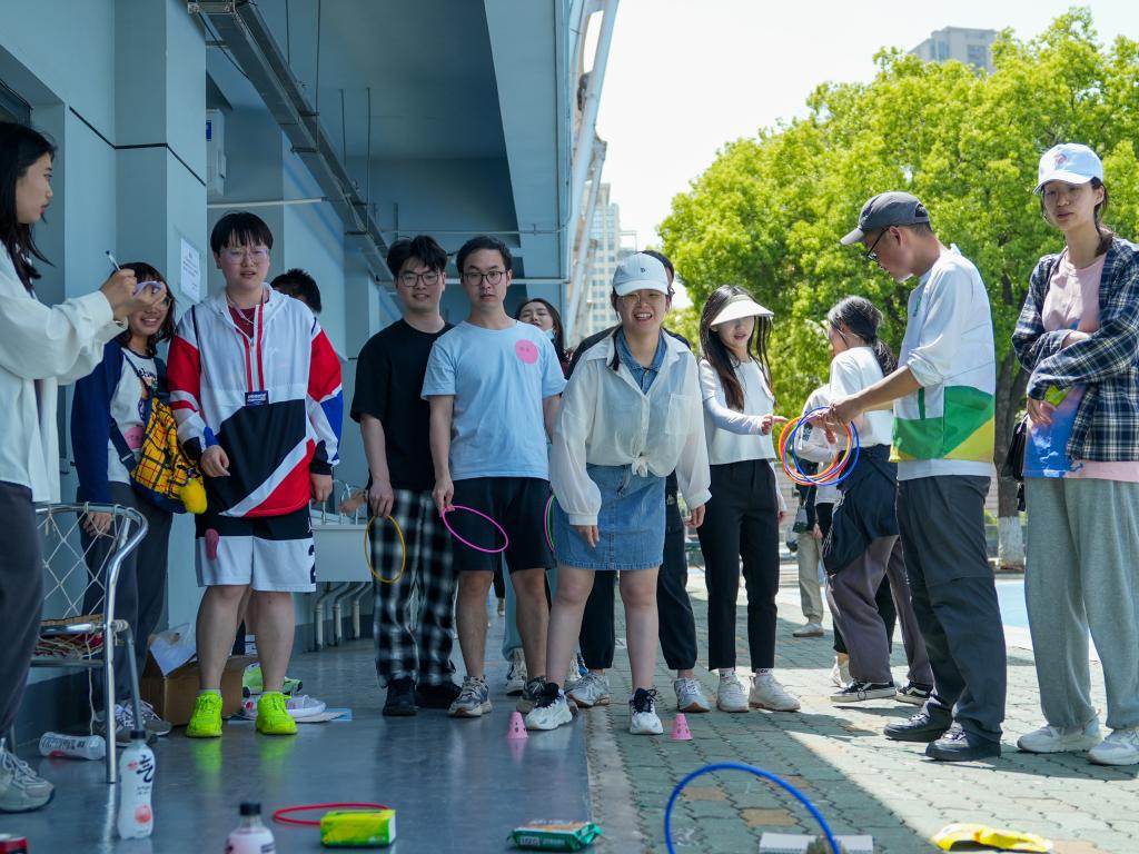 趣味游戲進(jìn)入尾聲,師生們來到套圈場地,瞄準(zhǔn)目標(biāo),手起圈落,套到心儀的獎品。