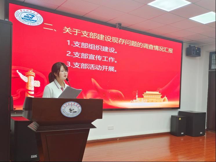 會議第三項,支部書記毛明鳳同志代表支委會對此次專題組織生活會的前期準備情況進行說明,并向支部全體同志匯報半年來支部工作及主題教育學習情況。會前,支委會通過認真組織學習、積極檢視問題、開展談心談話,用好調(diào)查研究傳家寶,在盤點收獲的基礎(chǔ)上深入查找自身存在的差距和不足。毛明鳳同志從支部組織建設(shè)、支部宣傳工作以及支部活動開展三個方面深入分析了當前支部建設(shè)存在的問題,并針對談心談話過程中收集到的意見建議進行總結(jié)。她表示,在過去的半年時間里,支部在學院黨委的領(lǐng)導(dǎo)下扎實推進主題教育,取得了階段性成果。主題教育有時間定格,但為民服務(wù)永無止境,后續(xù)支委會將始終堅持問題導(dǎo)向,聚焦急難愁盼,認真對照反饋,推動支部建設(shè)工作提質(zhì)增效。
