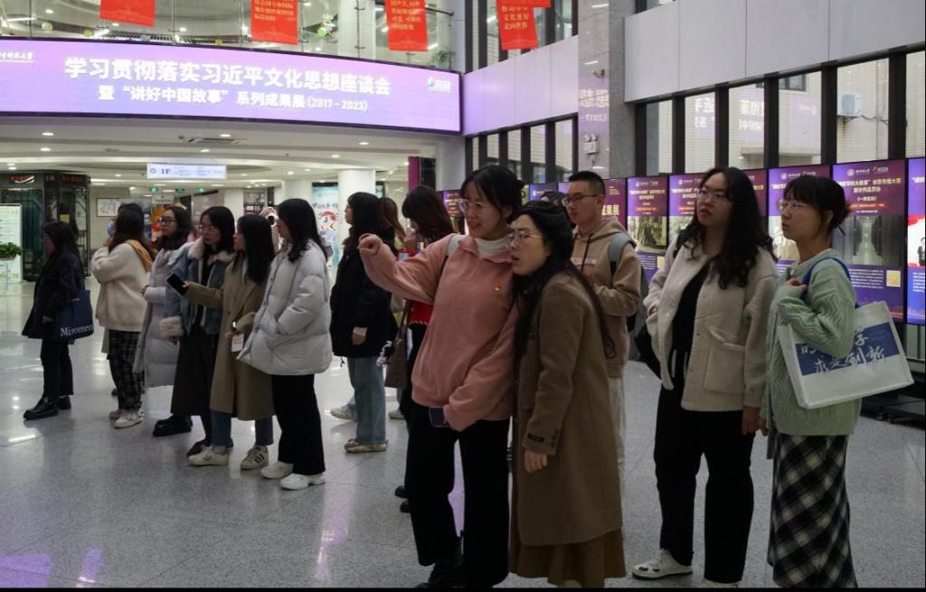 理論學(xué)習(xí)環(huán)節(jié)結(jié)束后,全體參會(huì)成員一齊前往主校區(qū)圖書(shū)館參觀“講好中國(guó)故事”系列成果展。各位黨員通過(guò)對(duì)優(yōu)秀作品展和研究成果展的參觀、學(xué)習(xí),對(duì)真實(shí)、立體、全面的中國(guó)有了更加深入的認(rèn)識(shí),并表示將接續(xù)傳遞好中國(guó)聲音,用情用心講好中國(guó)故事。
