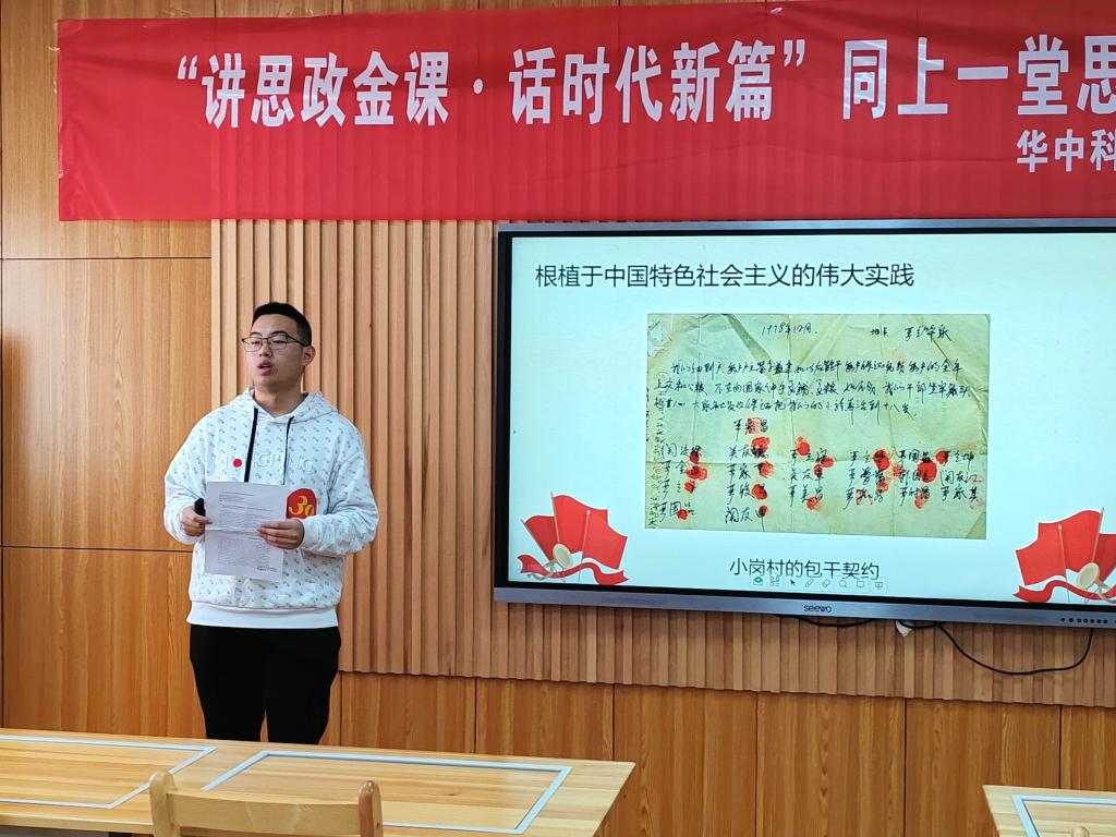 同學(xué)們圍繞《思想道德修養(yǎng)與法律基礎(chǔ)》《馬克思主義基本原理概論》《中國(guó)近現(xiàn)代史綱要》《毛澤東思想和中國(guó)特色社會(huì)主義理論體系概論》《習(xí)近平新時(shí)代中國(guó)特色社會(huì)主義概論》《形勢(shì)與政策》以及《當(dāng)代世界經(jīng)濟(jì)與政治》等課程,結(jié)合時(shí)代熱點(diǎn)與課程要求,深入挖掘教材中蘊(yùn)含的思政元素,選取了中國(guó)式現(xiàn)代化、全過(guò)程人民民主、辯證唯物主義、黨史、國(guó)史等多個(gè)維度闡釋教材內(nèi)容。大家的講解循序漸進(jìn)、重點(diǎn)突出,邏輯縝密、語(yǔ)言生動(dòng),不僅融入了家國(guó)情懷、社會(huì)責(zé)任、青年使命與擔(dān)當(dāng)?shù)群诵囊兀艺宫F(xiàn)了我院學(xué)子深厚的學(xué)科功底,呈現(xiàn)了一場(chǎng)視聽(tīng)盛宴。