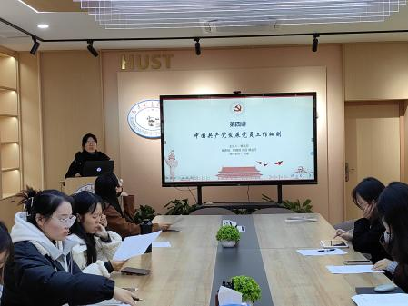 第四小組解讀了中國共產(chǎn)黨發(fā)展黨員工作細則。細則中詳細規(guī)定了入黨四大主要階段,從申請入黨到入黨積極分子的確定和培養(yǎng)教育、發(fā)展對象的確定和考察、預備黨員的接收到預備黨員的教育考察和轉(zhuǎn)正,從遞交入黨志愿書到正式入黨的22項流程。此外,還補充介紹了思想?yún)R報的寫法,提醒同學們要積極主動地向黨組織匯報自己的思想情況。