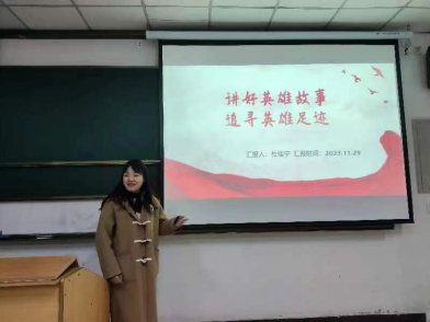 王康瑞同學首先講述了抗日民族英雄楊靖宇的故事,譚詩園同學聲情并茂地講述了惲代英的故事,莊佳園同學講述了五四先驅(qū)、愛國詩人、民主戰(zhàn)士聞一多的故事,楊柳笛同學講述了戰(zhàn)斗英雄董存瑞的事跡。在感受民族英雄的精神和勇氣的同時,也激發(fā)了同學對英雄們的崇敬、敬仰之情,樹立了強國有我的報國之志。
