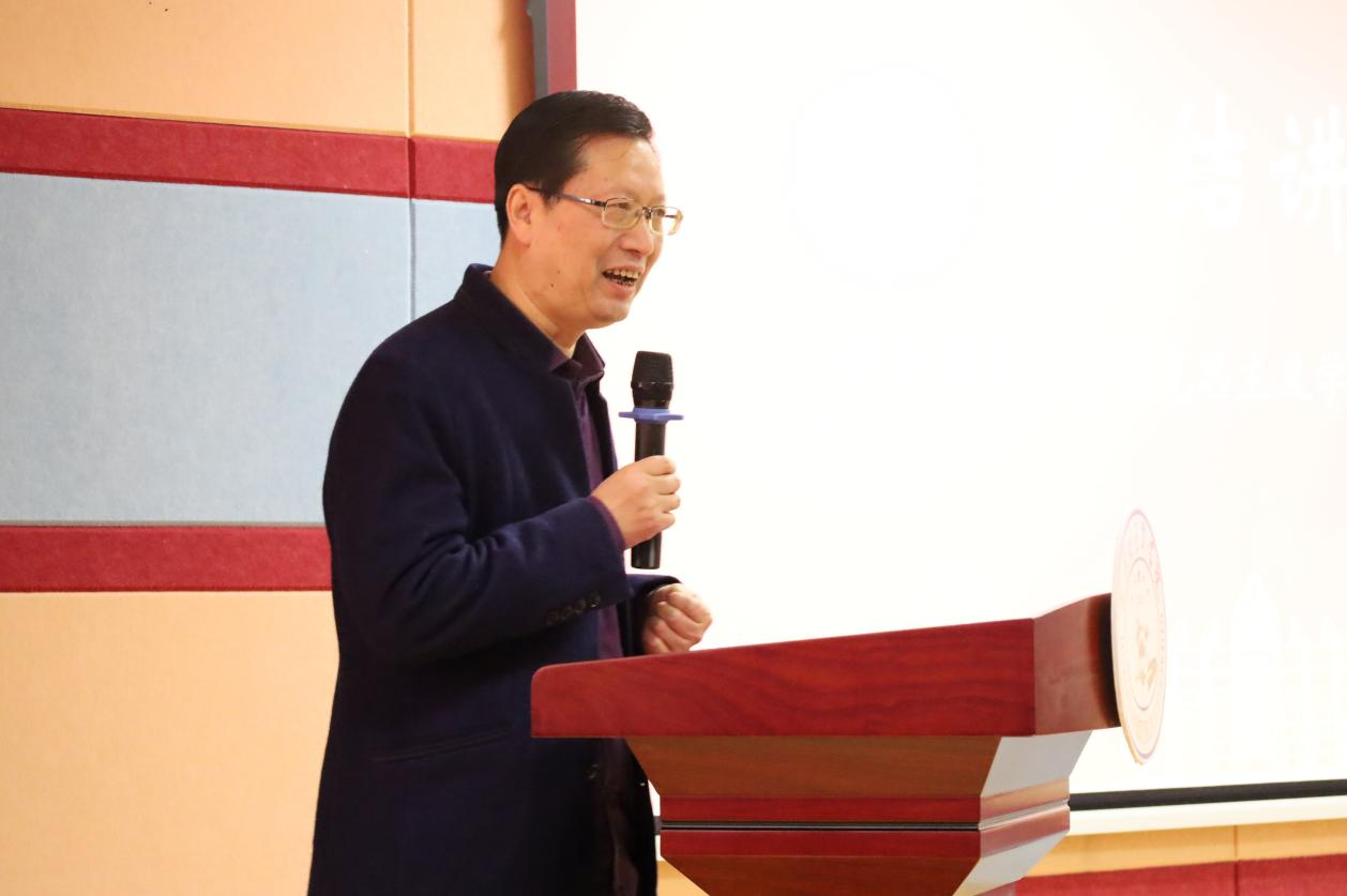 比賽伊始,李建國指出授課大賽是馬克思主義學院研究生培養(yǎng)體系中重要活動,他援引清代詩人袁枚的古詩《苔》,鼓勵學院的青年學生要像“也學牡丹開”的青苔一樣,趁青春年華,展拼搏力量,綻生命華章。他鼓勵同學們要敢于走上講臺,講深講透講活道理,通過心靈溝通的方式傳遞所學所思所悟,展現(xiàn)馬院學子的良好精神風貌。