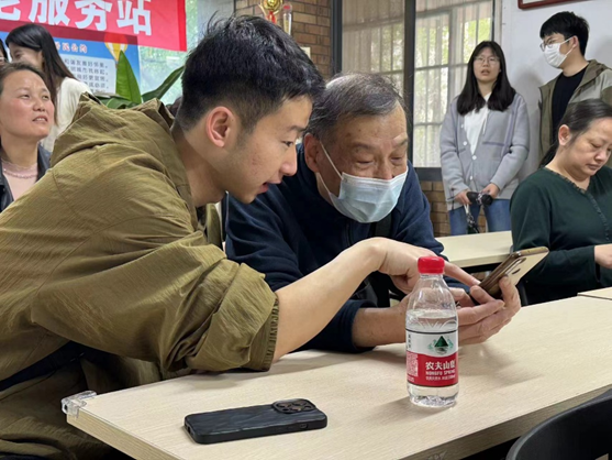 接著,馬院的志愿者在會議室開展1對1教學。志愿者們保持“無限循環(huán),學會為止”的教學態(tài)度,細心地講解攝像的基本知識并帶領老人實際操作,耐心地聆聽他們的需求并提供個性化的幫助。活動中叔叔阿姨們積極與志愿者們交流反饋,現(xiàn)場學習氛圍濃厚,教學效果顯著。