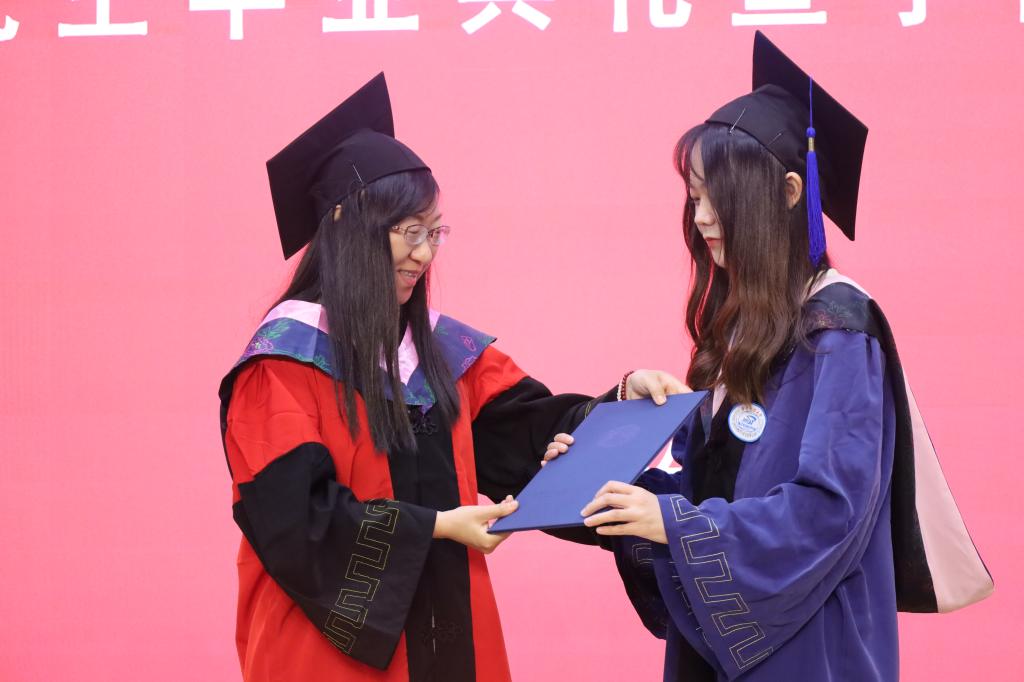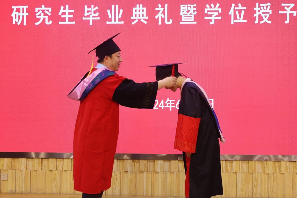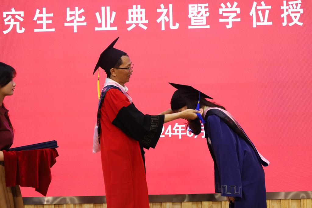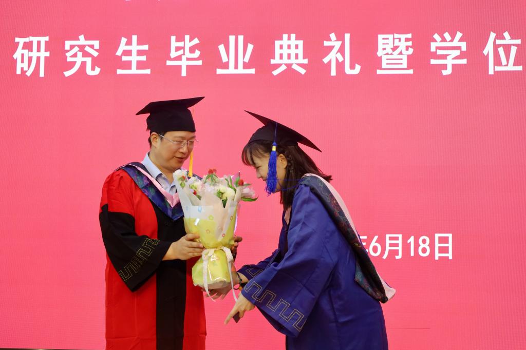 典禮最后進(jìn)行了學(xué)位授予儀式,畢業(yè)生們身著學(xué)位袍,頭戴學(xué)位帽,懷著激動而莊重的心情,依次踏上領(lǐng)獎臺。他們每一步都踏得堅(jiān)定而有力,仿佛在宣告著自己的成長與蛻變,接過學(xué)位證書時(shí),眼中閃爍著自豪的光芒。隨后,他們與多年來悉心指導(dǎo)的導(dǎo)師并肩站立,相機(jī)快門一響,定格了這一刻師生間深厚的情誼和嶄新的起點(diǎn)。