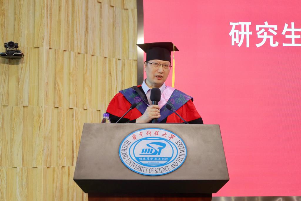 院研究生導(dǎo)師代表黃長義教授發(fā)表講話。他分享了自己多年的教學(xué)經(jīng)驗(yàn)和人生感悟,從腳踏實(shí)地、終身學(xué)習(xí)、不忘初心三點(diǎn)出發(fā),鼓勵畢業(yè)生們勇敢追夢,勇毅前行。