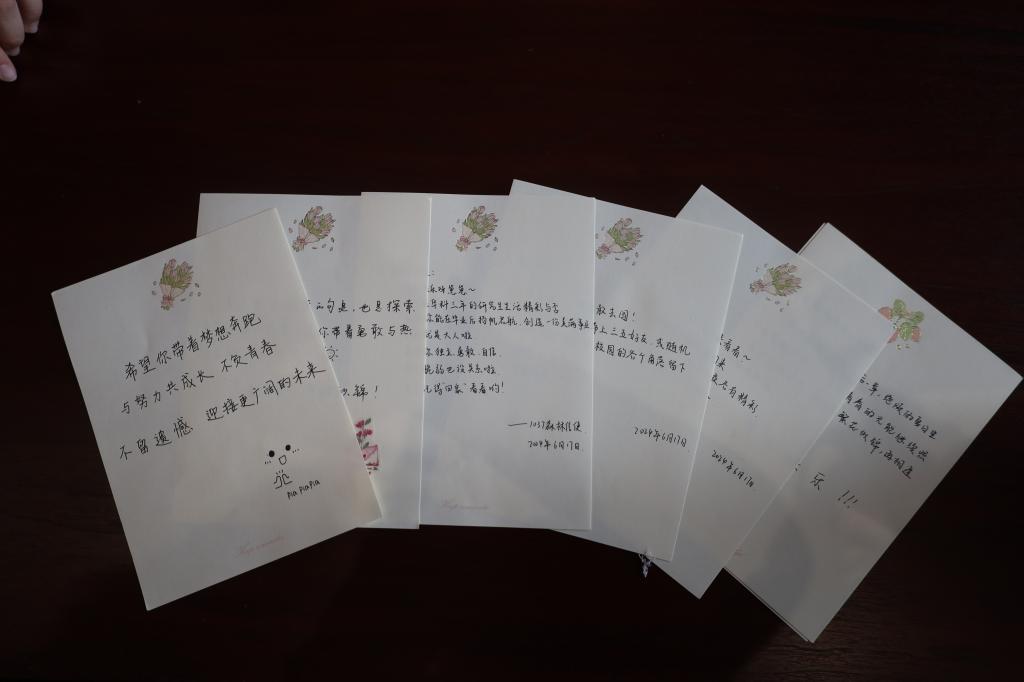 來自2022級和2023級的學(xué)弟學(xué)妹們,為即將畢業(yè)的學(xué)長學(xué)姐們手寫了祝福信件。這些文字不僅是對學(xué)長學(xué)姐們的暖心祝賀,也是讓全體馬院學(xué)子感受到“心懷熱愛,奔赴山河”的美好期許。