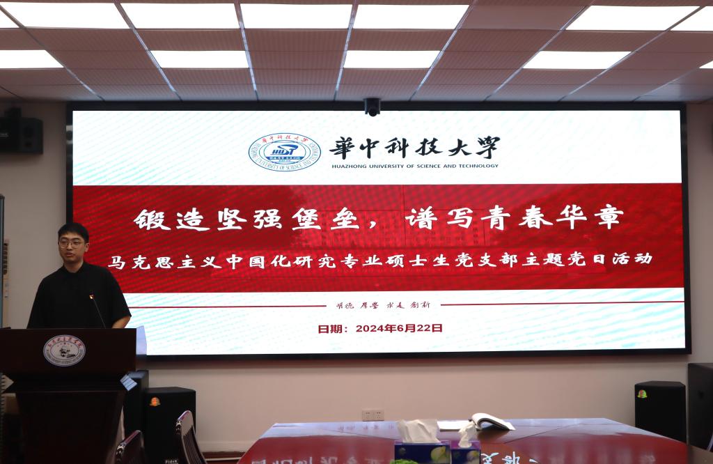 (文字、圖片:趙姍琳)為強化支部戰(zhàn)斗堡壘建設(shè),發(fā)揮黨支部“傳幫帶”縱向設(shè)置優(yōu)勢,堅定畢業(yè)生黨員理想信念,帶動支部黨員明確自身規(guī)劃、提升綜合素養(yǎng),6月22日下午,馬克思主義中國化研究專業(yè)碩士生黨支部舉辦“鍛造堅強堡壘,譜寫青春華章”主題黨日活動。會議由黨支部書記陳澤宇主持。