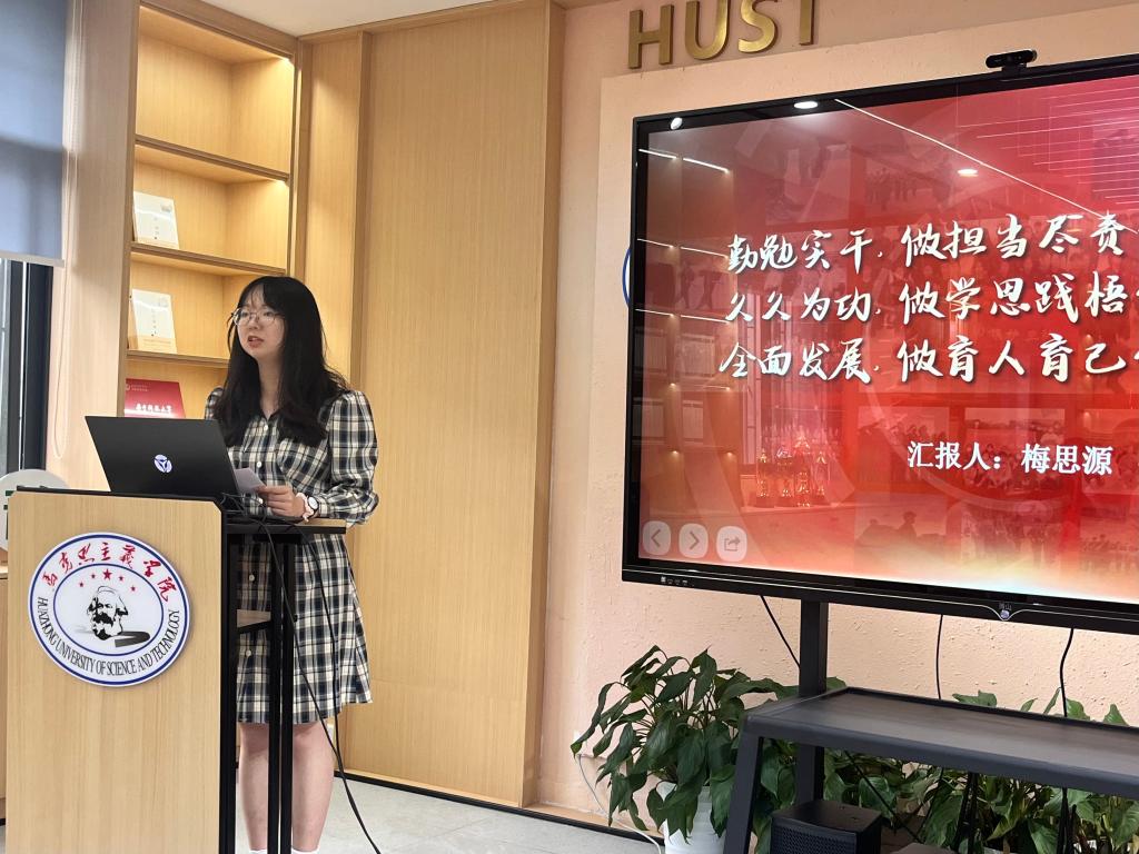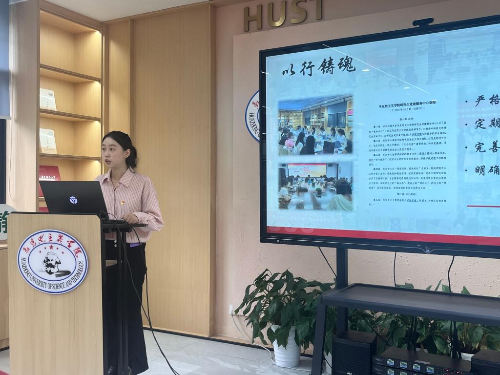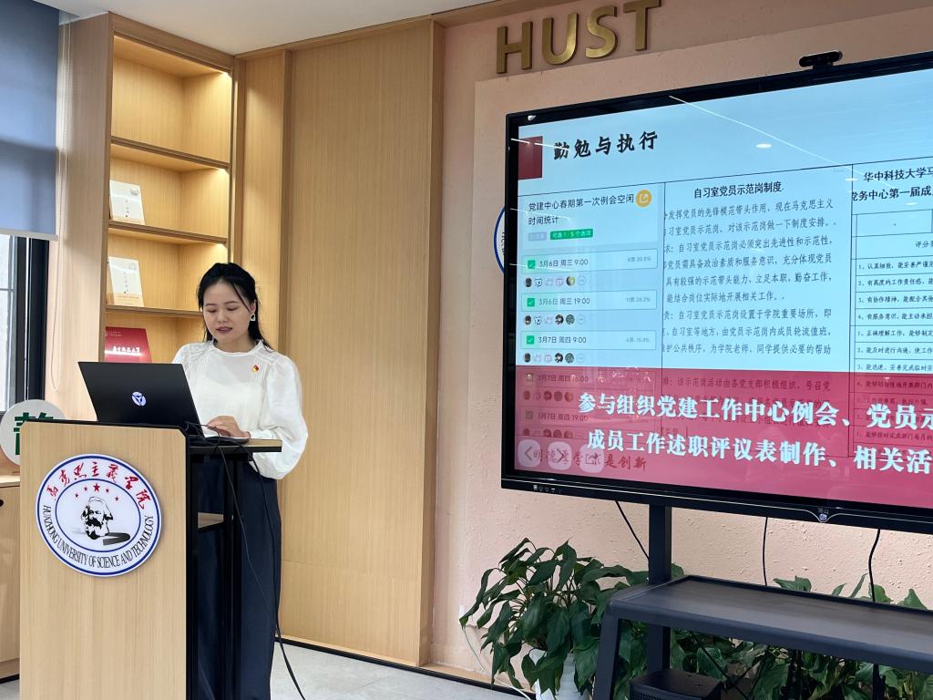 大會第一項,黨建中心全體成員工作述職。過去一年,黨建中心始終以“思想引領(lǐng),服務(wù)成長”為宗旨,圍繞學(xué)院黨建工作實際,聚焦學(xué)校“學(xué)思想、強黨性、重實踐、建新功”總要求,服務(wù)“頂天立地、追求卓越”的發(fā)展理念,引導(dǎo)研究生堅定馬克思主義信仰,在對接校院兩級業(yè)務(wù)、協(xié)助學(xué)院黨委工作、推進(jìn)黨支部建設(shè)、發(fā)展學(xué)生黨員和打造黨建品牌等方面發(fā)揮了重要作用。首先,總負(fù)責(zé)人紀(jì)博妍對黨建中心過去一年的整體工作情況進(jìn)行匯報,隨后,各部門成員依次對本部門工作和個人工作進(jìn)行總結(jié),并針對工作中的問題和不足進(jìn)行反思,無法到場的成員也以視頻錄制的形式在大會上進(jìn)行述職。經(jīng)過成員間的互評打分,梅思源、陳燁、柳祥琳、雷思雨、劉旖、楊培妍六位成員獲評2023-2024學(xué)年“黨務(wù)工作之星”。