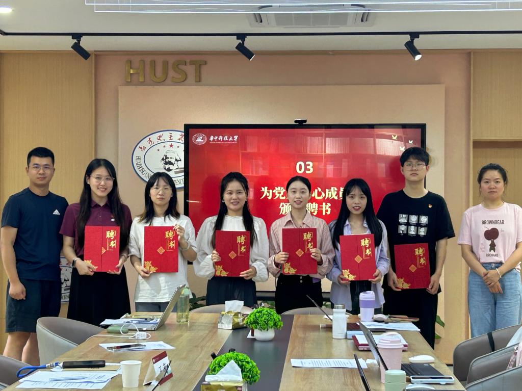大會第二項,由王茜和黨建中心第一屆總負(fù)責(zé)人賈才鵬為黨建中心成員頒發(fā)聘書。
