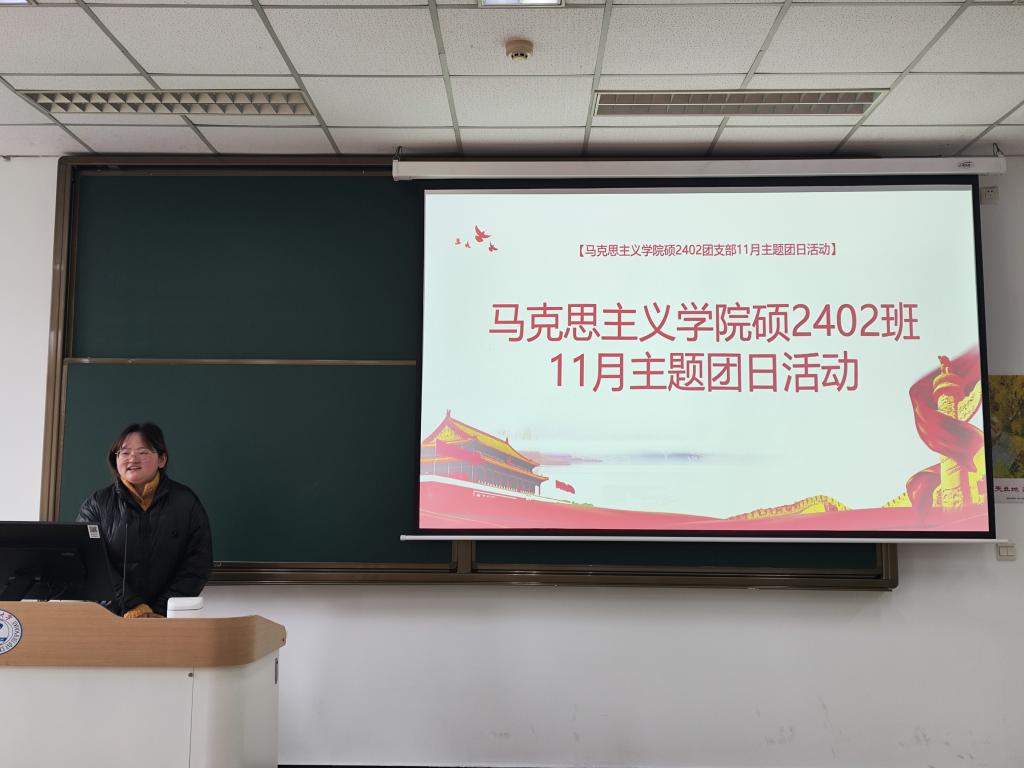 (通訊員:陳艷麗)為深入學(xué)習(xí)習(xí)近平總書記在湖北考察時的重要講話精神,激勵青年學(xué)生投身于祖國建設(shè)事業(yè)中,增強團(tuán)員青年的責(zé)任感和使命感,11月25日中午,2024級碩士生第二團(tuán)支部十一月主題團(tuán)日活動暨主題班會于東九樓D311教室順利舉辦。團(tuán)支部全體成員參加此次活動,活動由團(tuán)支部書記陳艷麗主持。