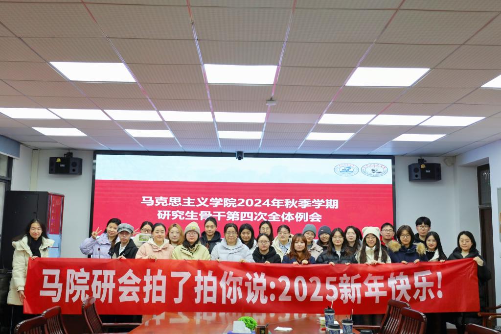 (通訊員:劉宛婷)12月26日中午,馬克思主義學(xué)院2024年秋季學(xué)期研究生骨干第四次全體例會在東七樓203會議室召開。馬克思主義學(xué)院黨委副書記、副院長王明飛,團委書記、輔導(dǎo)員王茜,學(xué)生班主任夏語,德育導(dǎo)師蔡超、邱思純,院研究生會全體成員、院新聞中心代表、院黨建工作中心代表參加會議。本次會議由院研究生會主席團成員高也淳主持。