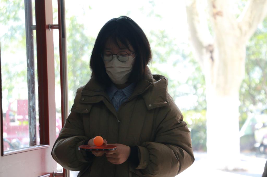 參賽者將乒乓球平放在球拍上,保證乒乓球不掉落的同時,爭分奪秒地走完規(guī)定路線,引來陣陣加油和歡呼。