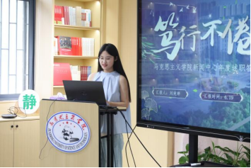 大會第一項,學院領導致辭。王明飛對新聞中心近一年的工作給予了高度肯定,并指出新聞中心是學生成長和自我鍛煉的良好平臺,中心成員能夠在日常工作中深入了解學院教學科研、學術(shù)交流、學生活動等一線情況,在實踐過程中不斷精進技能,實現(xiàn)自我提升。他強調(diào),新聞宣傳應當兼顧不同視角,精準把握政策導向,不斷增強新聞意識、拓寬新聞視野。希望中心成員未來能夠繼續(xù)加強與專業(yè)人士的對話與交流,深度挖掘馬院特色,生動講好馬院故事。