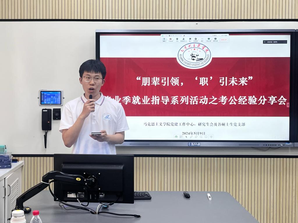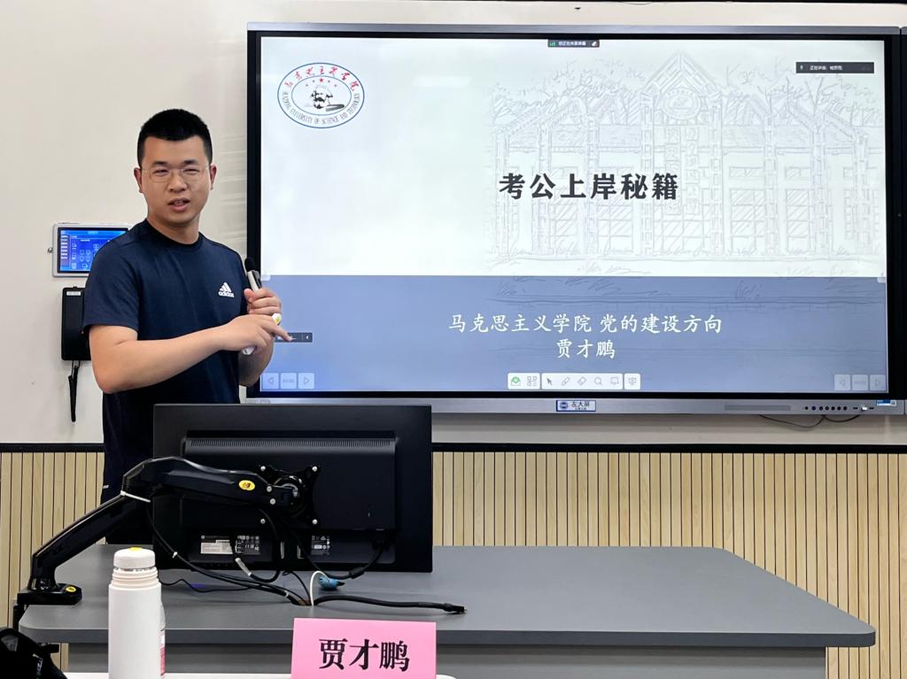 (通訊員:王康瑞)為幫助研究生更好地了解選調(diào)政策,做到高效備考,5月9日下午,“朋輩引領(lǐng),‘職’引未來”畢業(yè)季就業(yè)指導(dǎo)系列活動之考公專場經(jīng)驗(yàn)分享會于西五樓106教室舉行。本次分享會由華中科技大學(xué)馬克思主義學(xué)院研究生黨建工作中心、研究生會及各碩士生黨支部聯(lián)合舉辦。本次會議邀請新聞與信息傳播學(xué)院2022級碩士研究生應(yīng)銳雪,馬克思主義學(xué)院2021級碩士研究生李小君、賈才鵬、李語譞分享經(jīng)驗(yàn)。會議由馬克思主義學(xué)院2023級碩士研究生王康瑞主持。