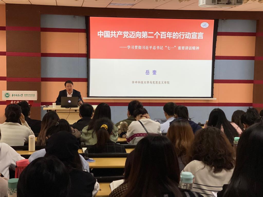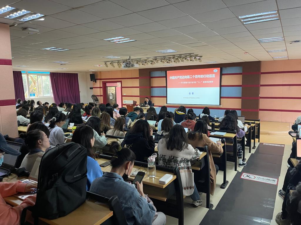 為深入學(xué)習(xí)貫徹習(xí)近平總書記“七一”重要講話精神,進(jìn)一步提升全院黨員同學(xué)的思想理論素養(yǎng)。10月28日下午,我院院長(zhǎng)岳奎帶來(lái)題為《中國(guó)共產(chǎn)黨邁向第二個(gè)百年的行動(dòng)宣言——學(xué)習(xí)貫徹習(xí)近平總書記“七一”重要講話精神》的專題黨課。報(bào)告廳座無(wú)虛席,同學(xué)們?nèi)褙炞ⅲJ(rèn)真聽(tīng)講。