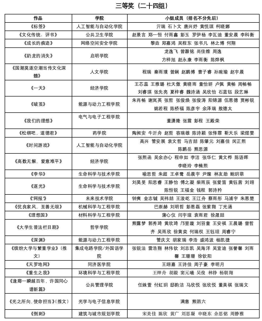 經(jīng)過同學(xué)們前期的精心準(zhǔn)備、課程組老師以及現(xiàn)場評委們的認(rèn)真評審,最終從提交的“微思政”作品中評選出特等獎2組、一等獎4組、二等獎6組及三等獎24組。