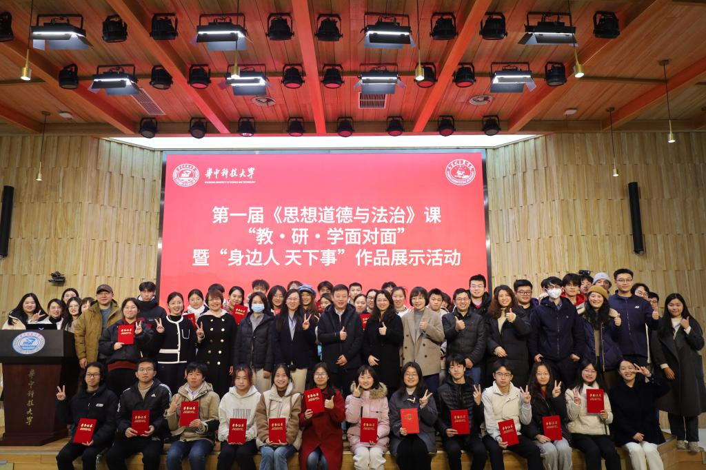 (通訊員:曾雨涵 劉宛婷)習(xí)近平總書記在全國高校思想政治工作會議上提出,思想政治工作從根本上說是做人的工作,必須圍繞學(xué)生、關(guān)照學(xué)生、服務(wù)學(xué)生。為滿足“05后”大學(xué)生的學(xué)習(xí)期待和發(fā)展需求,精準(zhǔn)把握其成長規(guī)律,準(zhǔn)確研判其思想動態(tài),并針對性開展教學(xué),“思想道德與法治”(以下簡稱“德法”)教研室于1月5日在梧桐語明德報告廳舉辦了第一屆《思想道德與法治》課“教·研·學(xué)面對面”暨“身邊人 天下事”作品展示活動,旨在學(xué)情調(diào)研的基礎(chǔ)上進(jìn)一步掌握學(xué)生思想狀況,明確學(xué)習(xí)需求;引導(dǎo)學(xué)生合作學(xué)習(xí),完成以“身邊人 天下事”為主題的“微思政”作品進(jìn)行小班研討和現(xiàn)場展示;延申課堂教學(xué)空間,進(jìn)一步提升學(xué)生對“思想道德與法治”課程的參與感、代入感和獲得感。啟明學(xué)院副院長王琳玲,黨委學(xué)生工作部本科生工作辦公室副主任羅珺,校團(tuán)委副書記楊柳,馬克思主義學(xué)院黨委書記王學(xué)東、副院長沈昊駒,馬克思主義學(xué)院教師夏增民、鄒旭怡、代利敏,思想道德與法治課程組全體教師,校青馬班黨支部副書記陳單睿,校團(tuán)委學(xué)生兼職副書記劉澤清,全校各學(xué)院的“德法”課學(xué)生代表,以及馬克思主義學(xué)院研究生代表等參加活動。活動由“德法”教研室主任萬晶晶主持。