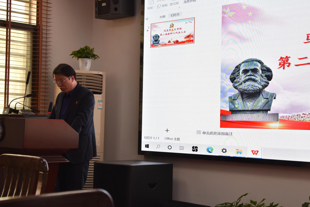此外,學(xué)院副院長(zhǎng)沈昊駒、學(xué)院工會(huì)主席栗志剛分別作了《馬克思主義學(xué)院2021年度財(cái)務(wù)工作報(bào)告》、《馬克思主義學(xué)院教代會(huì)工會(huì)工作報(bào)告》。