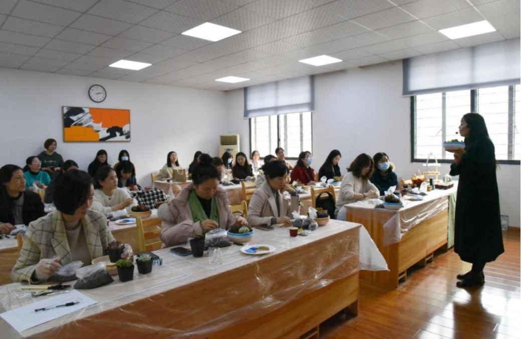 一花一世界,一園一風景。陽春三月,萬物復蘇,為慶祝即將到來的“三八”國際婦女節(jié),激發(fā)女工活力,凝聚女工力量,營造團結協(xié)作、和諧發(fā)展的工作氛圍,3月2日,在“三八”國際婦女節(jié)來臨之際,華中科技大學馬克思主義學院工會組織女職工開展了“世界因你而美麗”婦女節(jié)多肉微景觀制作活動。華中科技大學馬克思主義學院三十余名女職工參與本次活動,通過設計自己滿意的多肉盆栽,在活動中放松心情、陶冶情操,用綠色點綴生活。