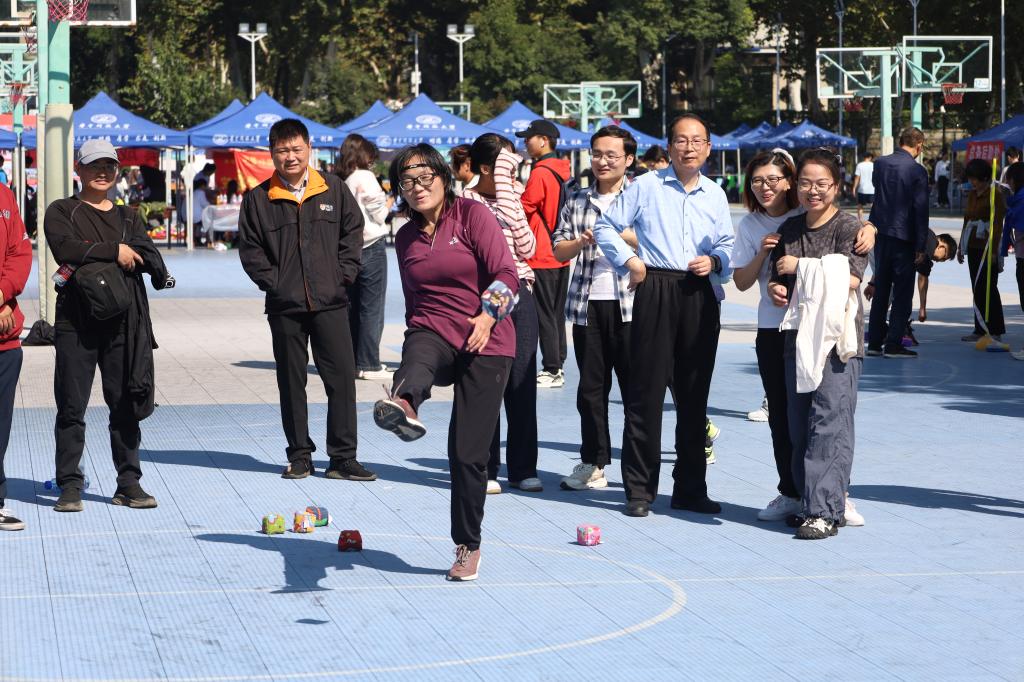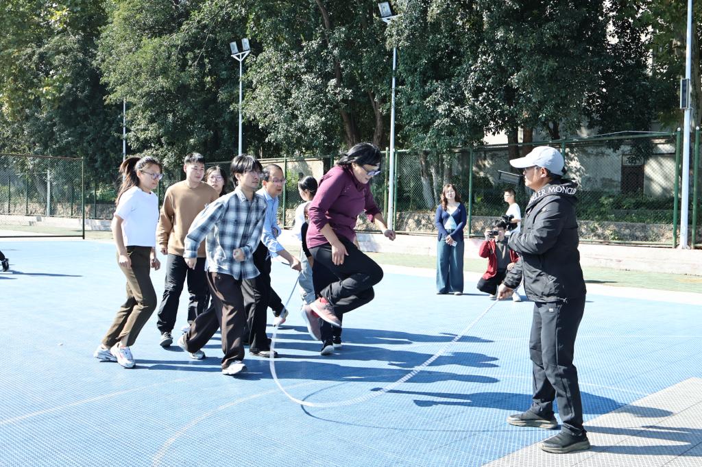 年輕的面孔洋溢著朝氣蓬勃的活力,而從容穩(wěn)健的賽場(chǎng)老將則用他們的堅(jiān)韌與經(jīng)驗(yàn)為賽場(chǎng)增添別樣的溫暖與感動(dòng)。集體長(zhǎng)繩中,他們步伐一致,每一次躍起都是對(duì)團(tuán)結(jié)力量的禮贊;投籃比賽的冷靜發(fā)揮,是經(jīng)驗(yàn)與技巧的完美融合;巨人腳步下的協(xié)調(diào)一致,展示了超乎想象團(tuán)隊(duì)協(xié)作力;摸石過(guò)河里,沉穩(wěn)前行映射出面對(duì)困難時(shí)的堅(jiān)韌不拔;沙包打靶時(shí),精準(zhǔn)投擲展現(xiàn)的是歲月沉淀下的從容與智慧;袋鼠跳接力中的靈動(dòng)跳躍,是對(duì)青春活力的致敬;一圈到底的快速傳遞,則是默契配合的最佳證明。