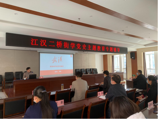 2021年3月25日下午,江漢二橋街道組織開(kāi)展黨史主題教育專(zhuān)題輔導(dǎo),邀請(qǐng)華中科技大學(xué)尹平老師作以“武漢,英雄城市的百年瞬間”為題的黨史專(zhuān)題輔導(dǎo)。江漢二橋街領(lǐng)導(dǎo)班子、街機(jī)關(guān)全體黨員、社區(qū)黨委書(shū)記、兩新黨組織負(fù)責(zé)人等50余名黨員參加。