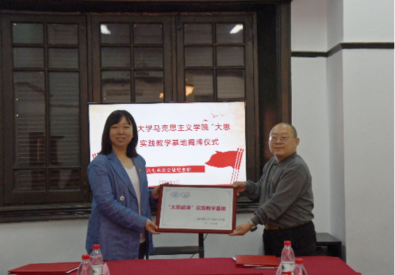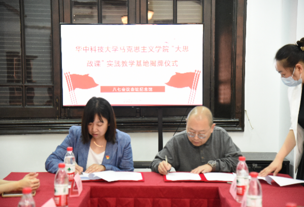 (通訊員:鄭潔)為深入貫徹落實習近平總書記關于“大思政課”的重要批示精神,加快構建“大思政課”工作格局。5月25日上午,華中科技大學馬克思主義學院與武漢中共中央機關舊址紀念館、八七會議會址紀念館舉行合作共建“大思政課”實踐教學基地簽約暨揭牌儀式。學院黨委書記劉雅然,中國近代史綱要教研室主任夏增民,團委書記、研究生輔導員王茜以及中國近代史綱要教研室部分教師和學生代表出席本次簽約揭牌儀式。