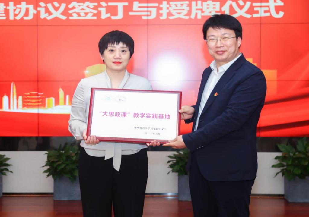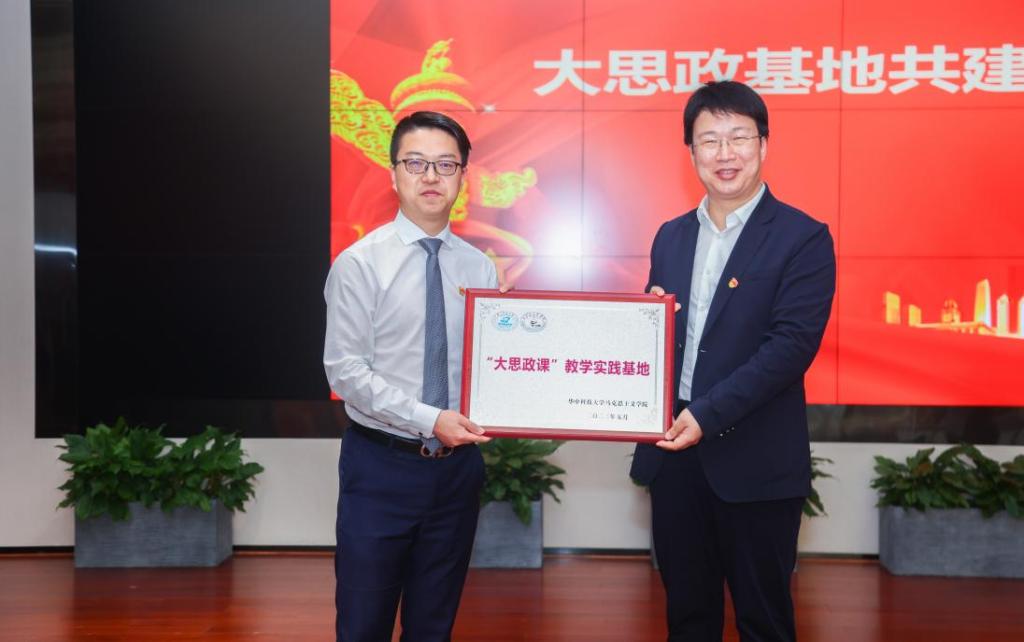為加強校企合作,切實推動“大思政課”教學實踐工作的開展,發(fā)揮教學實踐基地在立德樹人和社會服務(wù)方面的資源優(yōu)勢和互補效應(yīng)。5月12日,我院與招商銀行武漢分行、國藥集團中聯(lián)藥業(yè)有限公司、長飛光纖光纜股份有限公司、中建三局三公司四家企業(yè),共建“大思政課”教學實踐基地簽約暨授牌儀式,在招商銀行武漢分行舉行。華中科技大學馬克思主義學院院長岳奎、副院長沈昊駒,招商銀行武漢分行黨委組織部部長黃昊,國藥集團中聯(lián)藥業(yè)有限公司黨委書記、工會主席王偉,長飛光纖光纜股份有限公司黨委常務(wù)副書記張光華,中建三局三公司黨建工作部副部長、團委書記林立垚出席了本次簽約授牌儀式。