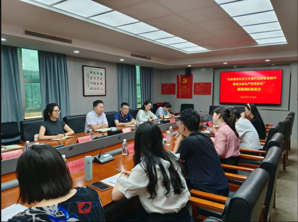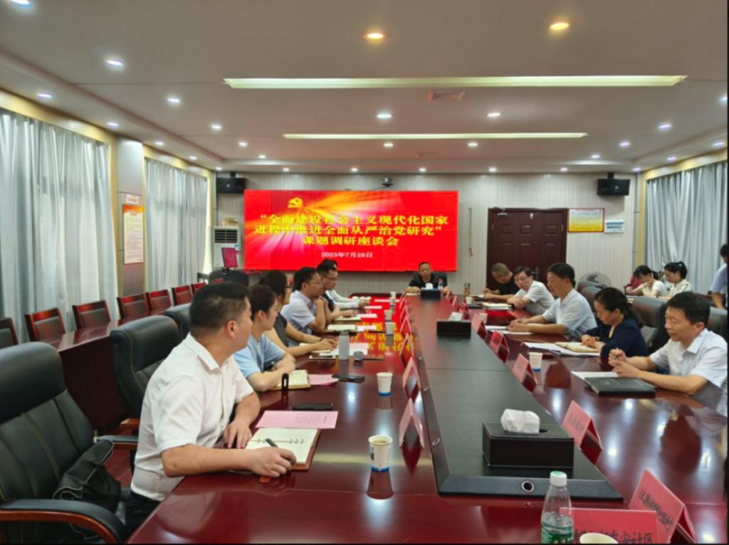 7月28日上午,課題組一行赴新洲區(qū)開展調(diào)研。座談會上,來自新洲區(qū)委組織部、區(qū)委辦公室、區(qū)紀(jì)委、區(qū)委政法委、區(qū)法院、區(qū)檢察院、辛沖街道、汪集街道陶咀村等單位的主要負(fù)責(zé)人圍繞新時(shí)期各單位落實(shí)全面從嚴(yán)治黨工作產(chǎn)生的最大變化、取得的最大成效、面臨的新問題以及當(dāng)前最重要的工作任務(wù)進(jìn)行了匯報(bào)。課題組成員進(jìn)行提問交流,共同探討了全面建設(shè)社會主義現(xiàn)代化國家進(jìn)程中推進(jìn)全面從嚴(yán)治黨的未來路徑。